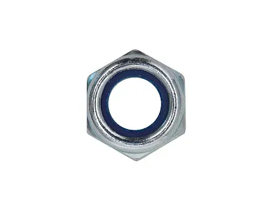 Гайка стопорная DIN 985 – это металлический резьбовой крепеж с полимерной вставкой. Изделие используется при формировании герметичных соединений, устойчивых к температурной деформации и самопроизвольному раскручиванию.